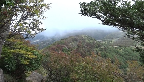 苔むした木々を見ながら標高を上げて展望所へ。空が曇ってき