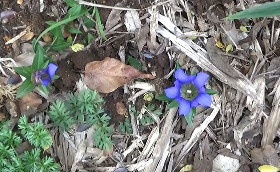 たまにリンドウが咲いてます。まだ紅葉が少ない感じ、今年は
