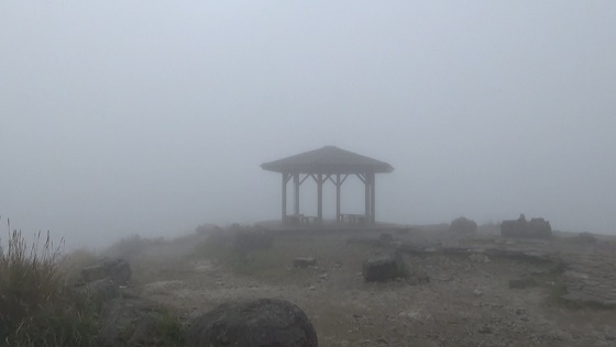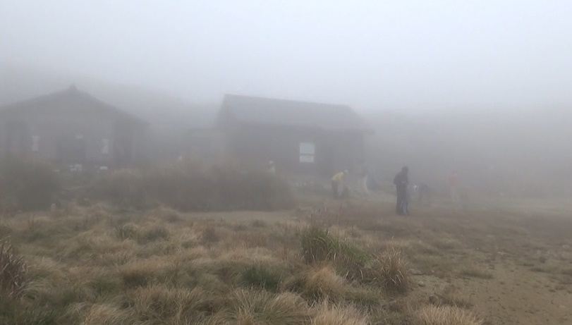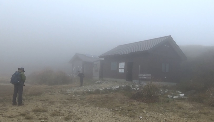 そしてキリの中に避難小屋がありました。久住分れ。休憩中にシ